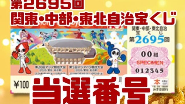 宝くじ 関東・中部・東北自治 宝くじ 当選番号 結果 2025年10月17日抽選 第2695回 【令和7年】【宝くじ】【速報】【発表】【抽選日】 当せん番号 2025年10月11日 おつかいねこ https://tokaikensyo.com/wp-content/uploads/2022/09/2.png おつかいねこの懸賞生活ブログ