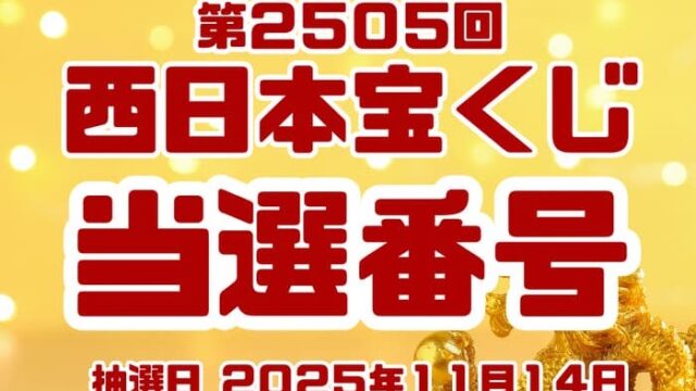 宝くじ 西日本 宝くじ 当選番号 結果 2025年11月14日抽選 第2505回 【令和7年】【宝くじ】【速報】【抽選日】当せん番号 2025年11月14日 おつかいねこ https://tokaikensyo.com/wp-content/uploads/2022/09/2.png おつかいねこの懸賞生活ブログ