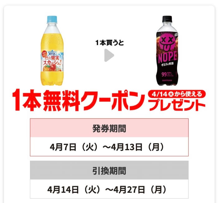 お酒を買うと抽選で当たる無料クーポン