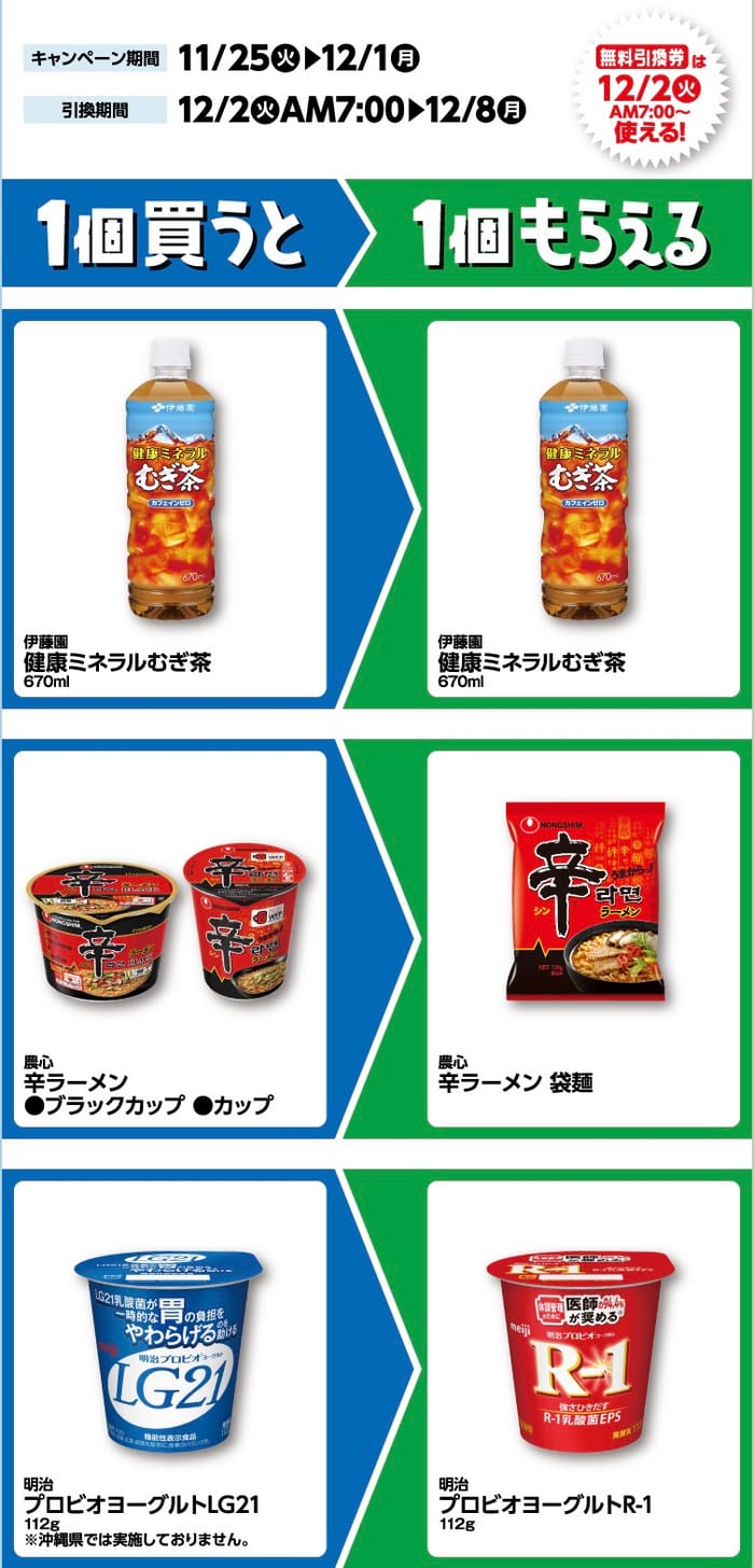- 1 コンビニ 1つ買うと1つもらえるキャンペーン