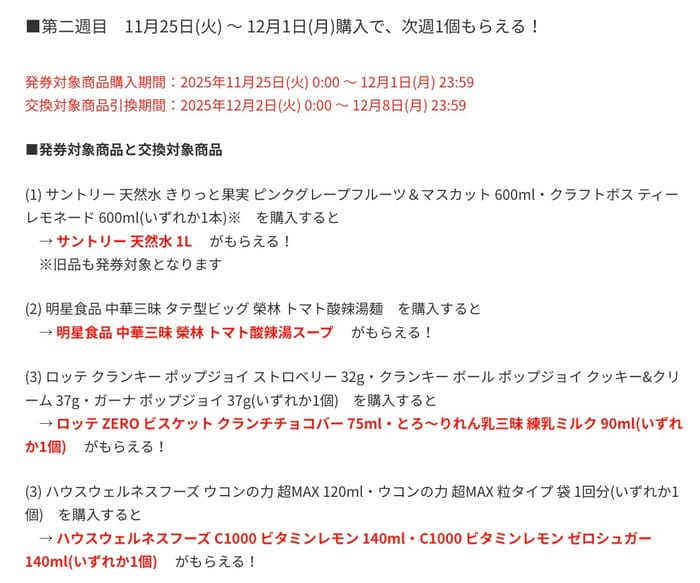 コンビニ 1つ買うと1つもらえるキャンペーン