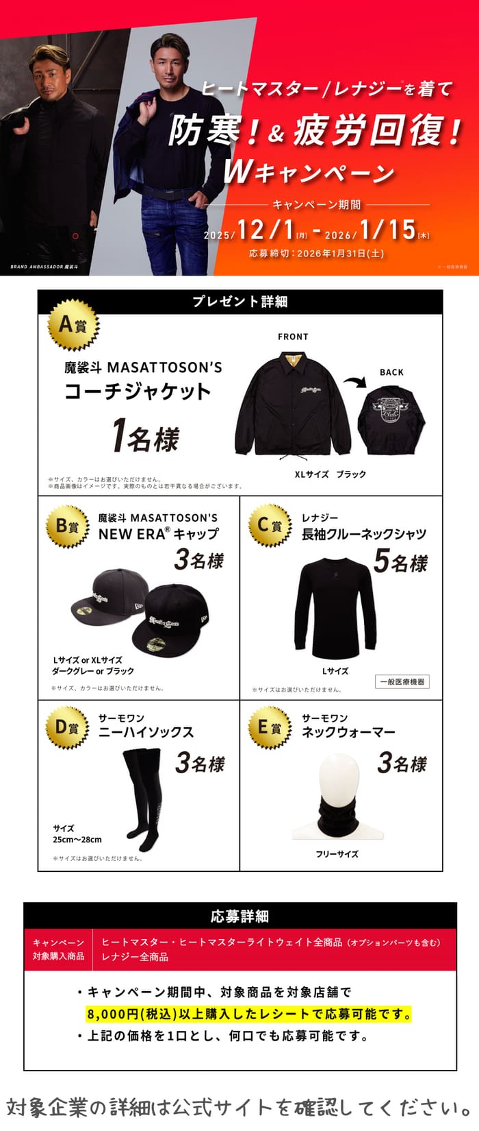 - 1.0.58 対象店舗限定 ヒートマスター/レナジーを着て 防寒!&疲労回復!Wキャンペーン