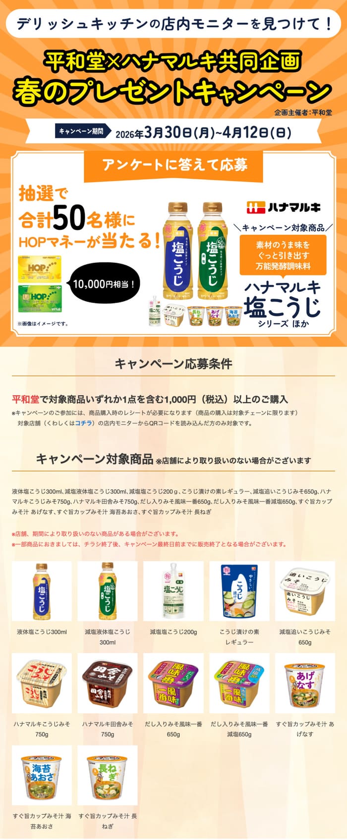 もうすぐ始まる対象店舗の店内モニターから応募するキャンペーン