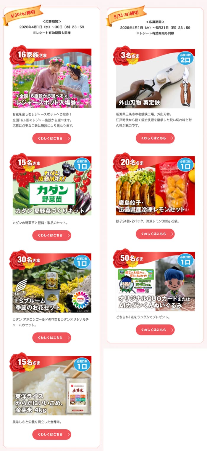 各コース必要条件を満たしたレシートをWEB応募もしくはハガキ応募。
