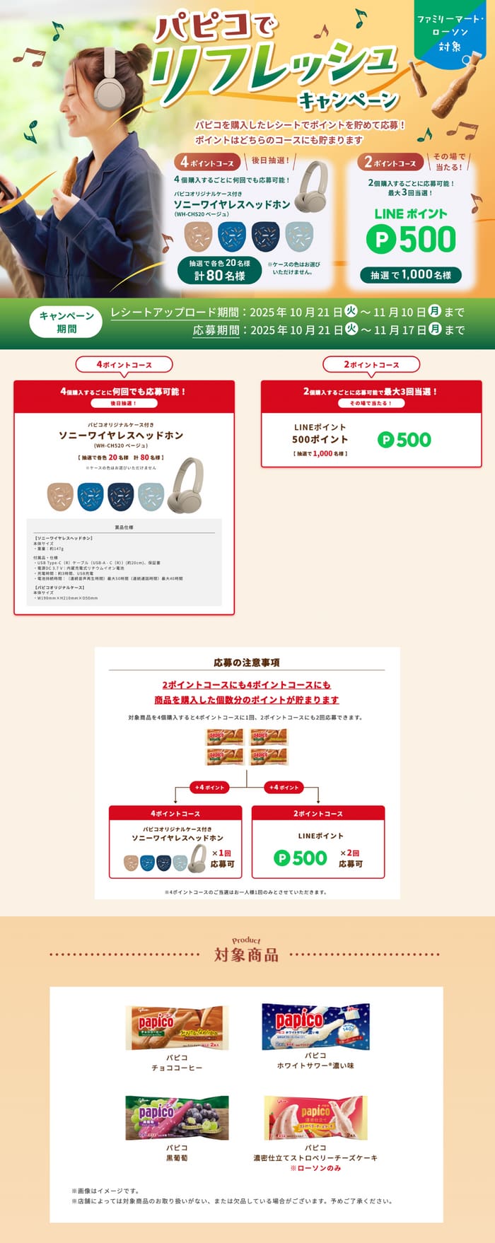 ※コンビニの無料引換キャンペーンを絡めた応募については個々のキャンペーンによって対応が異なる可能性があります。